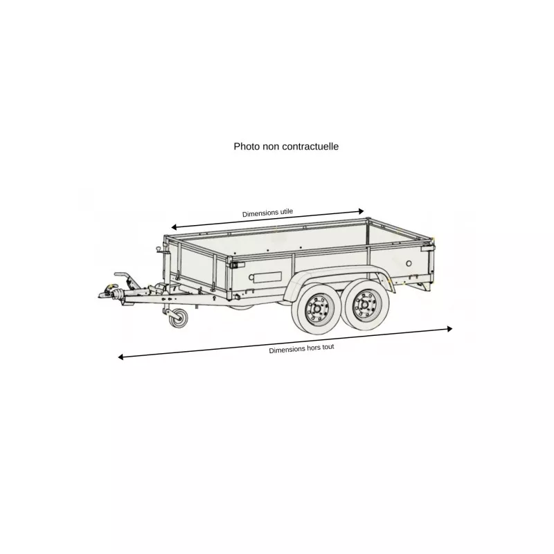 | Référence | Dimensions caisse utile | Dimensions hors tout | Freinée | PTAC